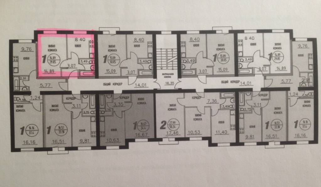 Общая пл. 29,85 кв.м ( жилая комната 14,89 кв.м, кухня 8,40 кв.м, прихожая 3,07кв.м, с/у 3,49кв.м.
