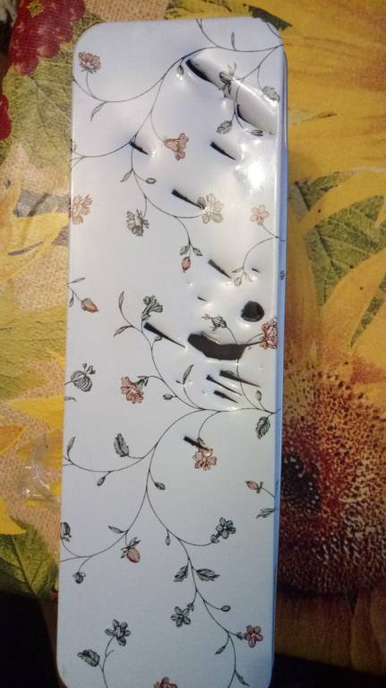 Кроме того, чем-то красным залита кровать (2 комплекта хорошего постельного белья, подушки с двух сторон, простыня, одеяло), испорчено много вещей: ножом истыканы насквозь металлические коробки для хранения, порваны настольные игры, изрезаны на части игрушки, ... и это, боюсь, не последние открытия.